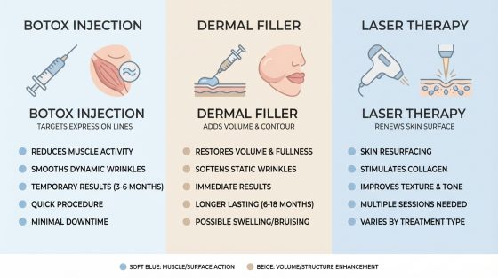 ここからは、海外の皮膚科や美容外科で広く用いられている代表的なシワ対策の施術を、概要だけご紹介します。 日本では制度や適応が異なる場合もありますので、「こうした方法がある」という情報として捉え、実際に検討する場合は必ず医師と相談してください。